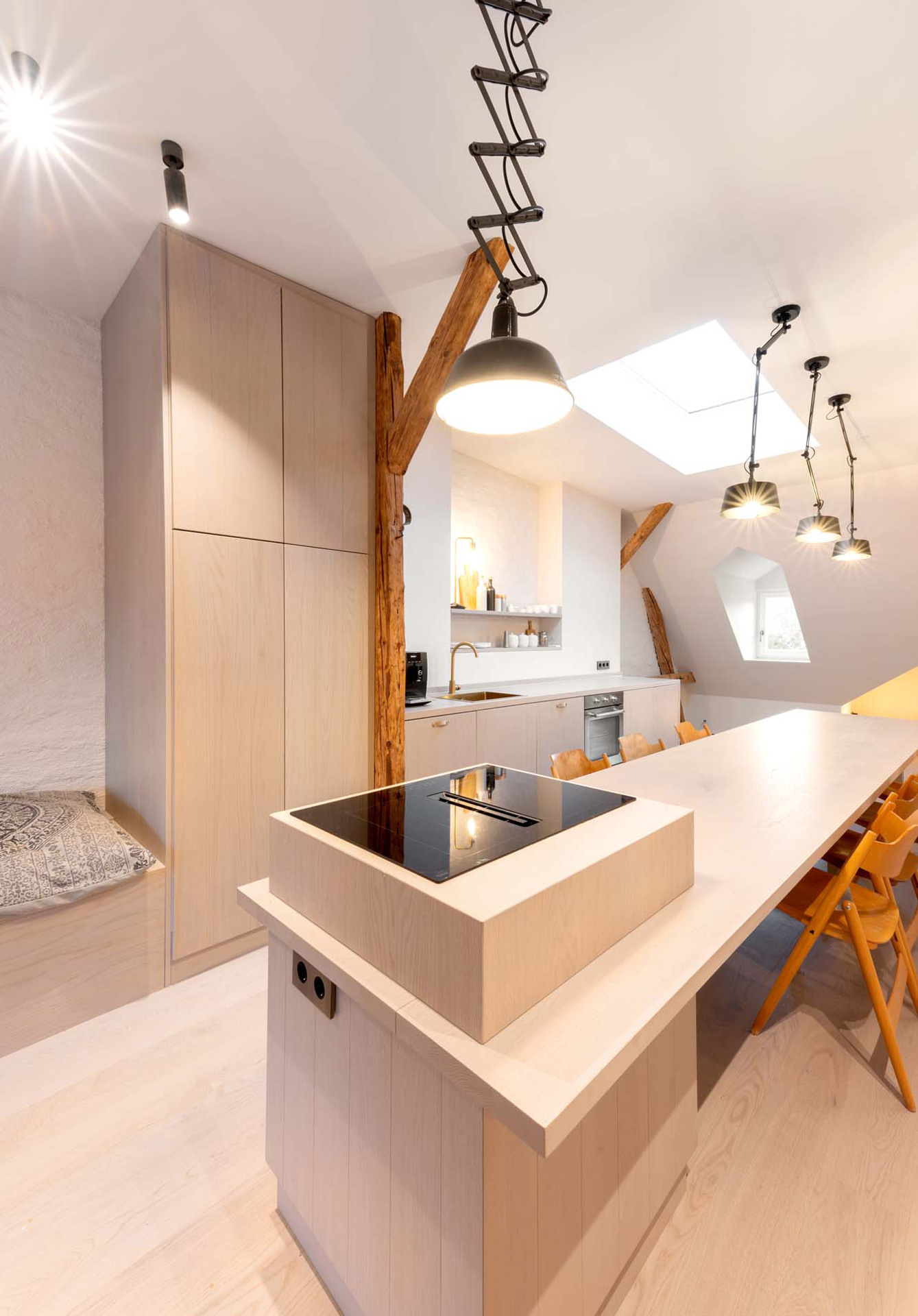 - freistehende Kücheninsel mit Induktionsherd mit integriertem Dunstabzug